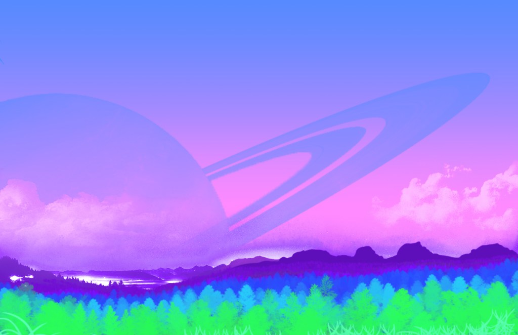 After creating the logo, I started work on the background art. This was a massive part of creating the visuals for this festival. I created an alien landscape with a planet in the background, and different color atmosphere to give it a completely alien feel. I then added the logo on top of that background, and it turned out great! It looks like something EDC would create keeping its vibrant colors and theme.